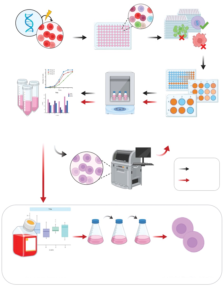 Основные этапы процесса разработки стабильных моноклональных клеточных линий-продуцентов рекомбинантных белков (cell line development) могут варьировать в зависимости от используемых модифицированных клеточных линий, экспрессионных векторов, методов и оборудования.